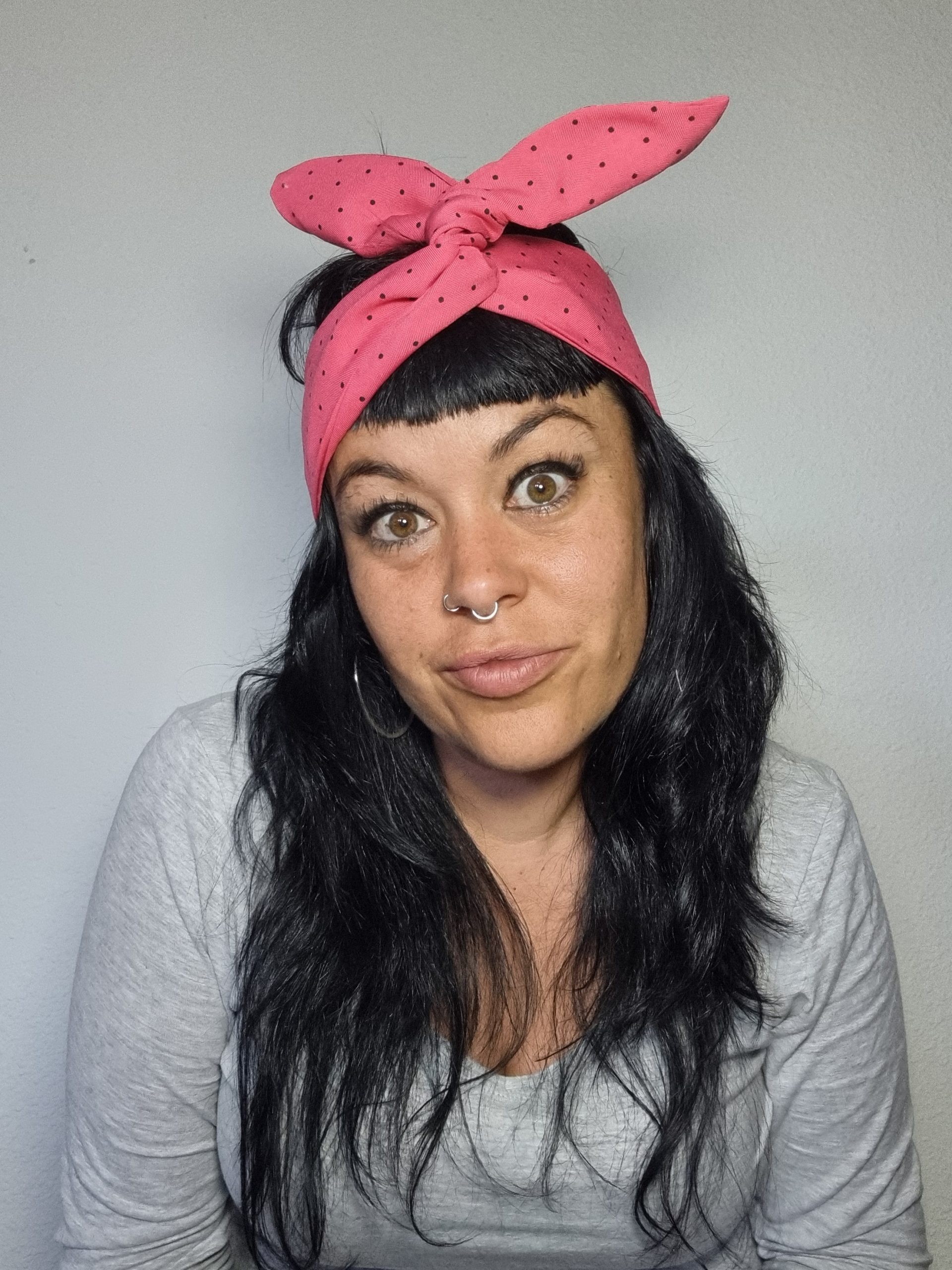 -Estilo Pin-up: Colócala como diadema con el lazo bien protagonista en la parte superior.