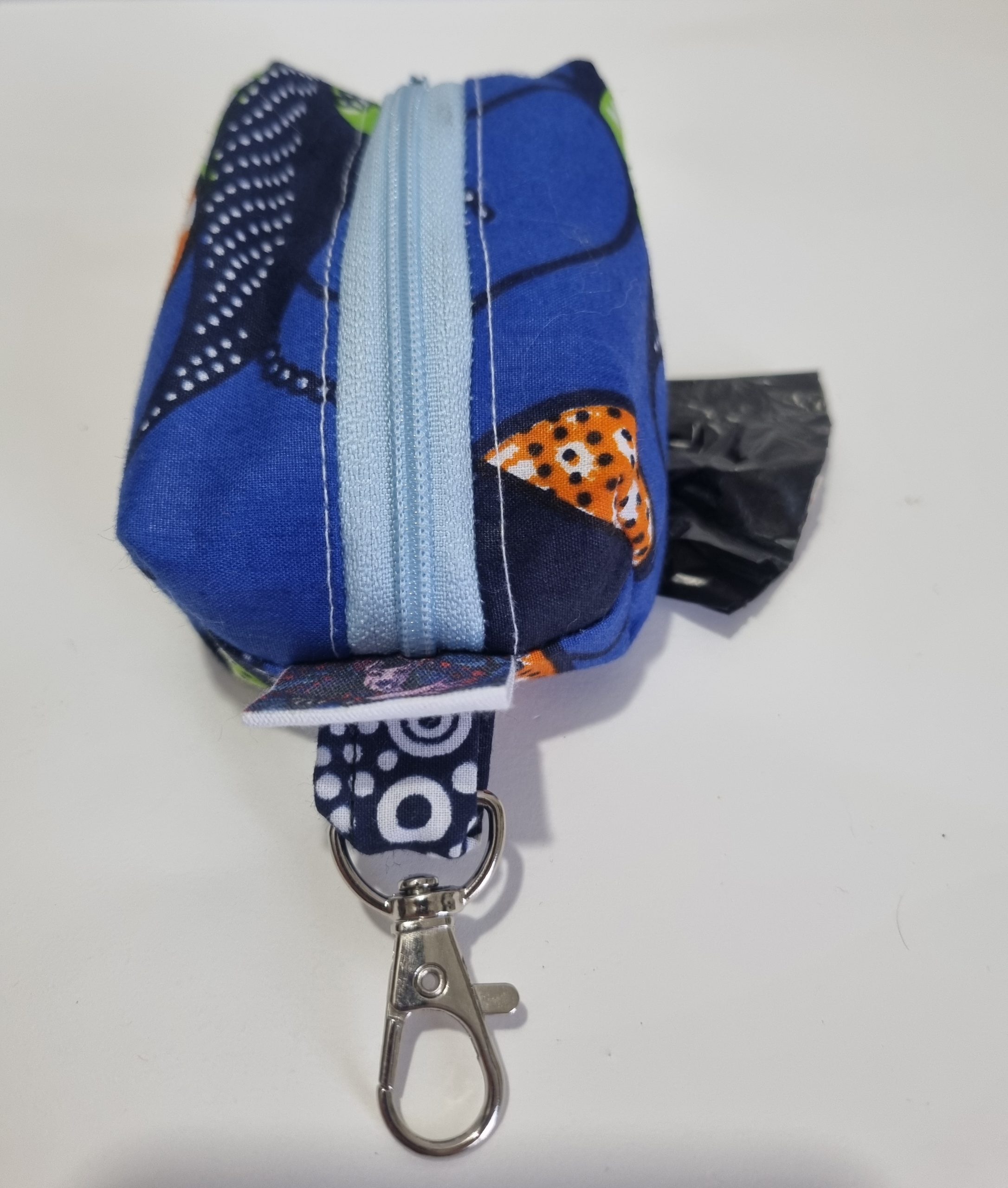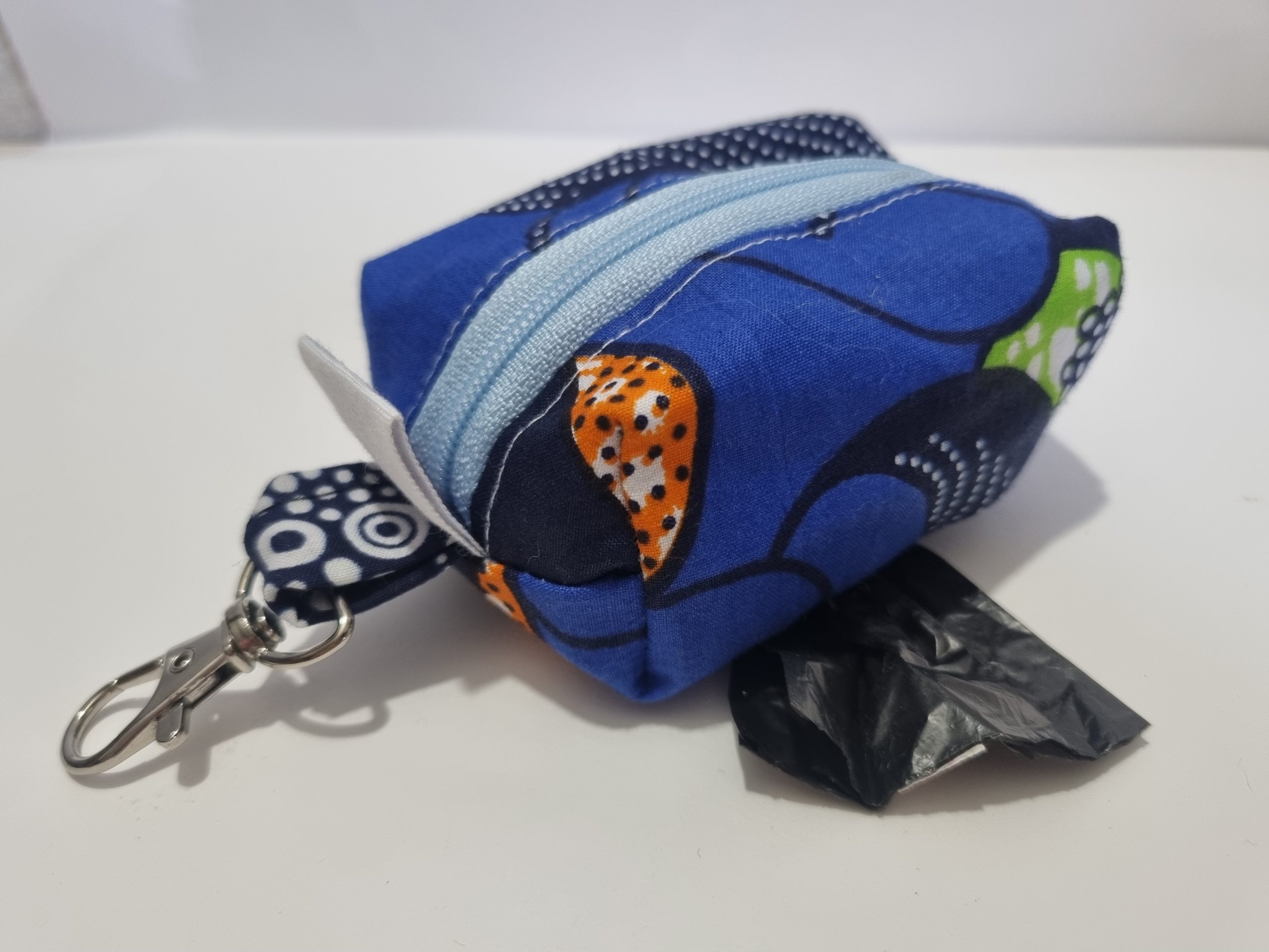 Nuestros porta bolsas para cacas de perros, hechos a mano con telas de algodón de alta calidad y una práctica cremallera, es la solución perfecta para dueños responsables. Este ingenioso accesorio incluye un suministro de bolsas, asegurando que siempre estés preparado para recoger después que tu perro haga sus necesidades.