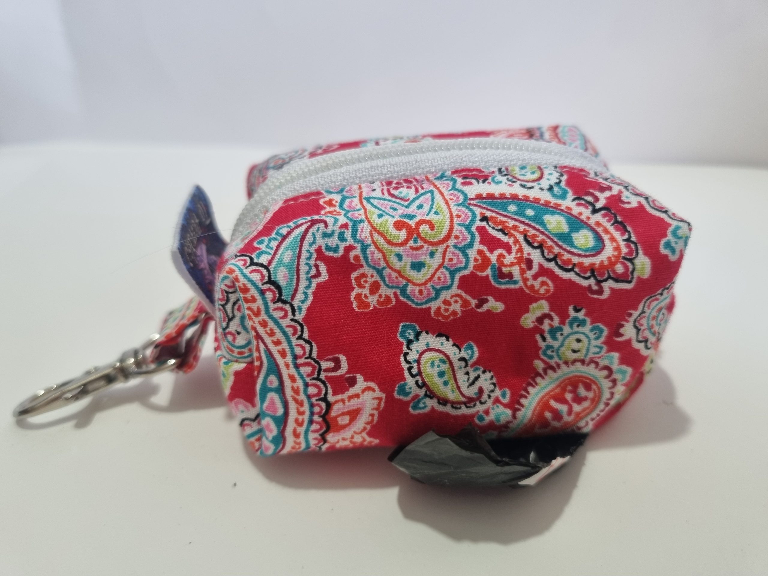 Nuestros porta bolsas para cacas de perros, hechos a mano con telas de algodón de alta calidad y una práctica cremallera, es la solución perfecta para dueños responsables. Este ingenioso accesorio incluye un suministro de bolsas, asegurando que siempre estés preparado para recoger después que tu perro haga sus necesidades.