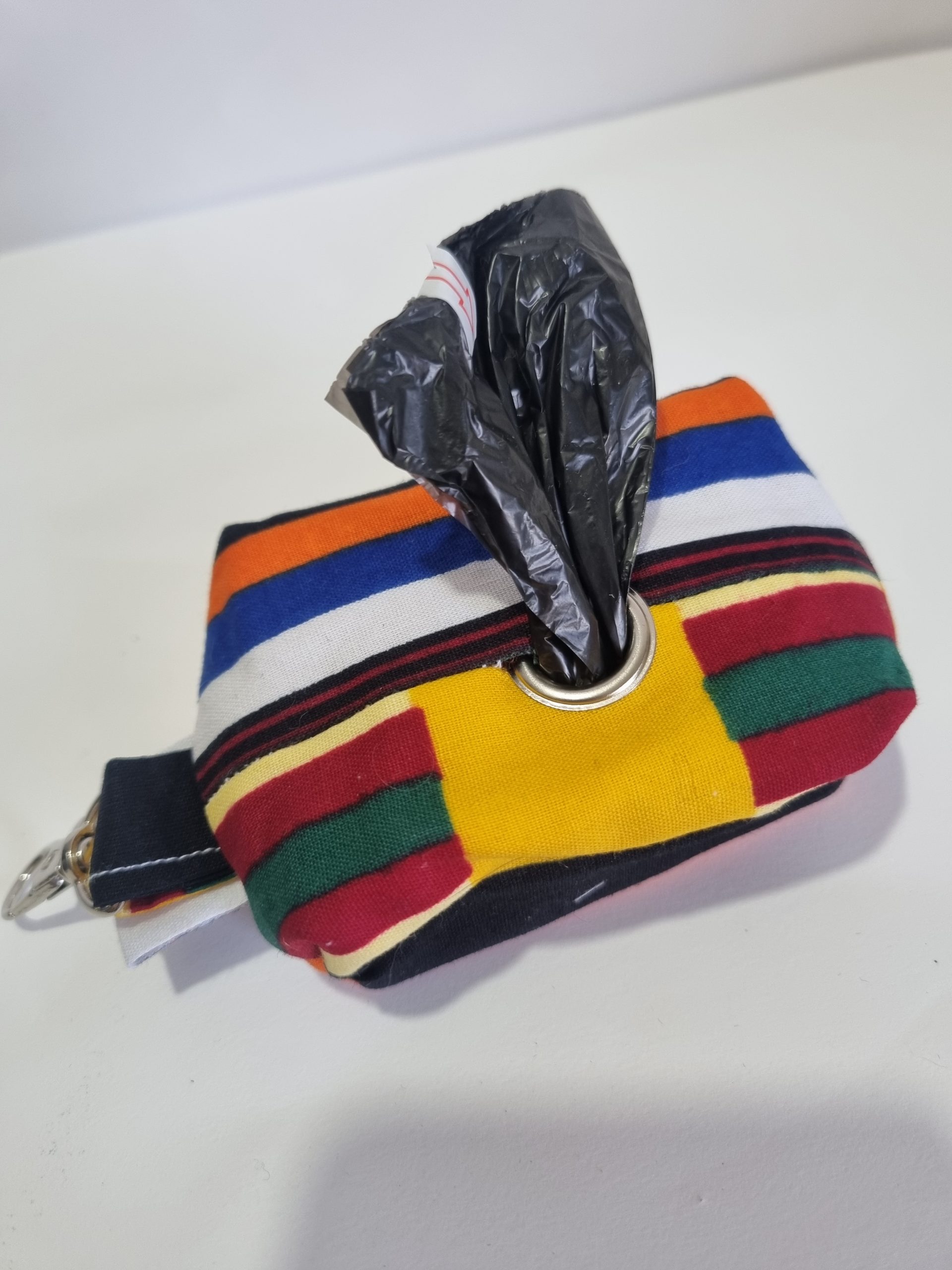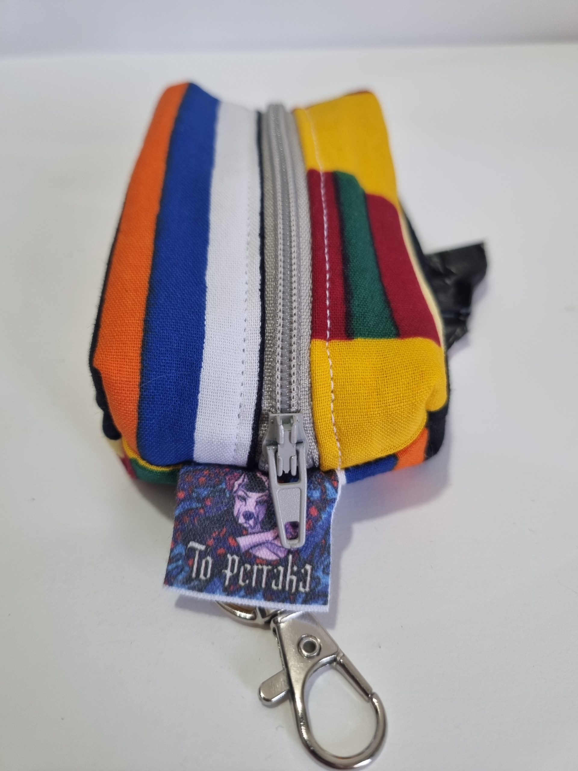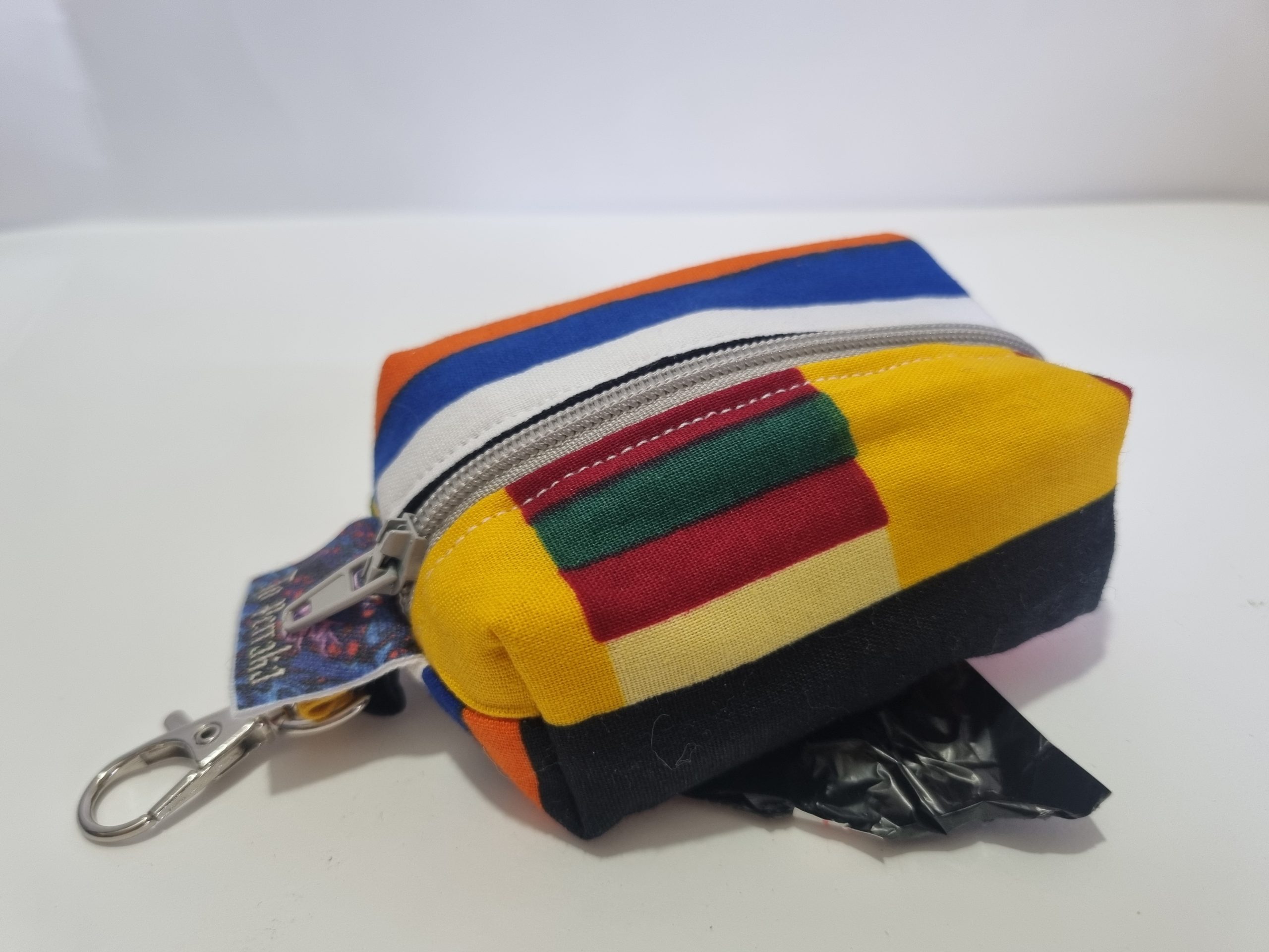 Nuestros porta bolsas para cacas de perros, hechos a mano con telas de algodón de alta calidad y una práctica cremallera, es la solución perfecta para dueños responsables. Este ingenioso accesorio incluye un suministro de bolsas, asegurando que siempre estés preparado para recoger después que tu perro haga sus necesidades.
