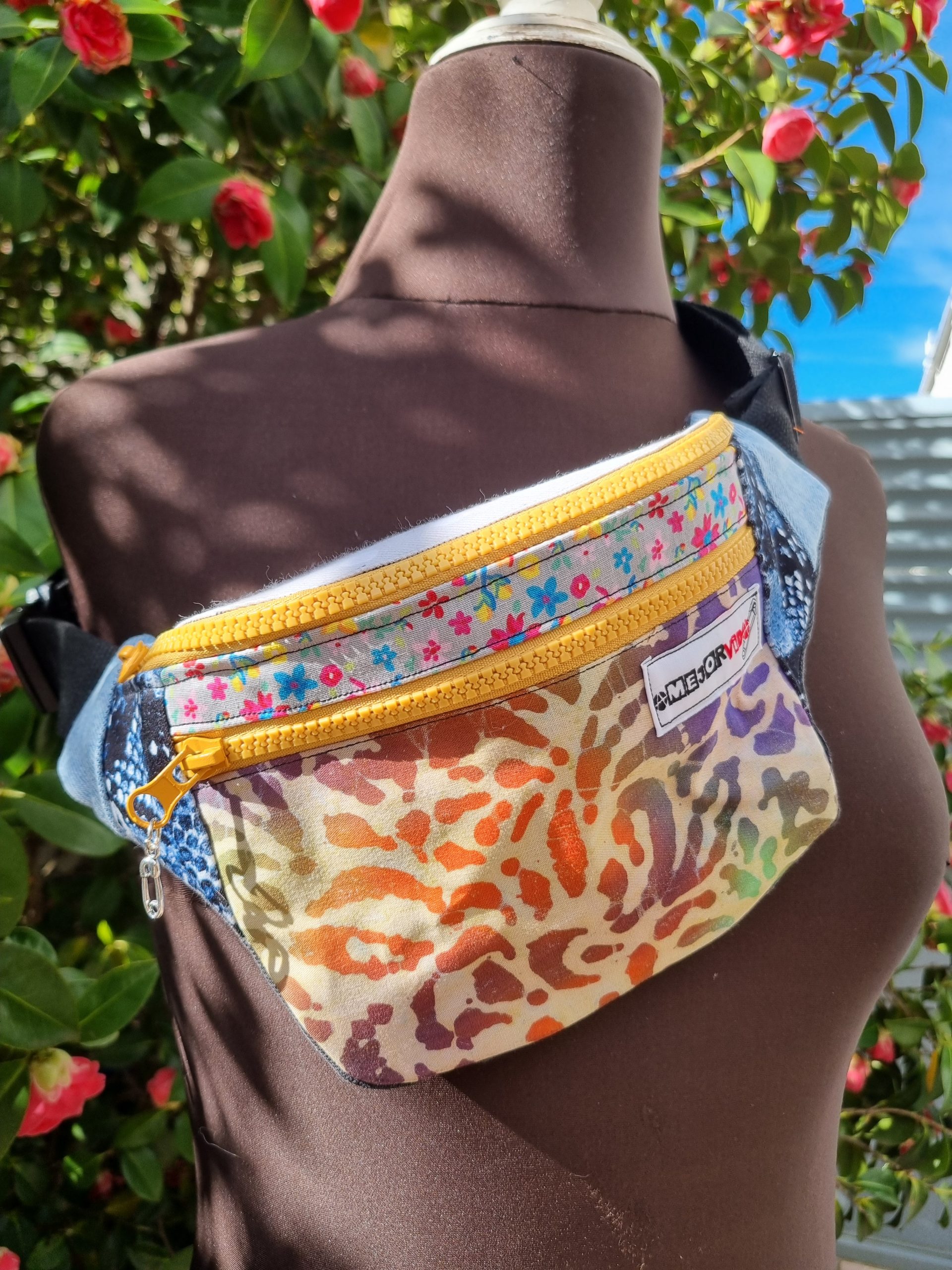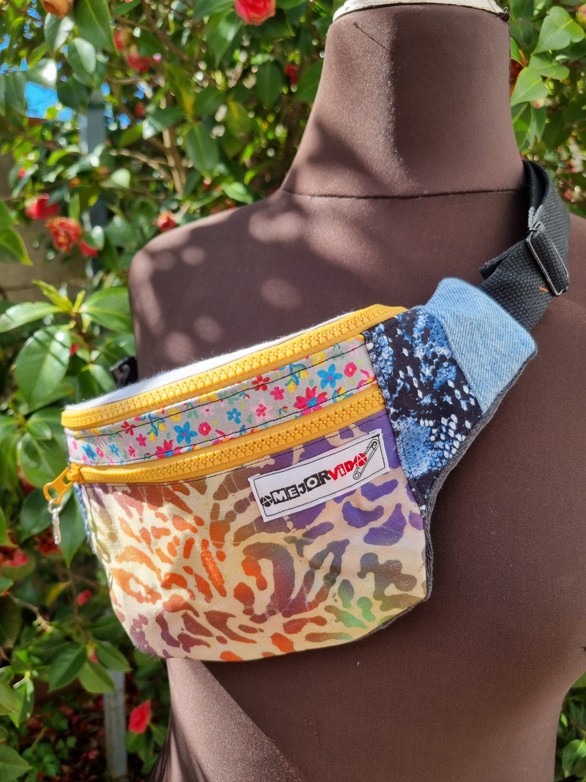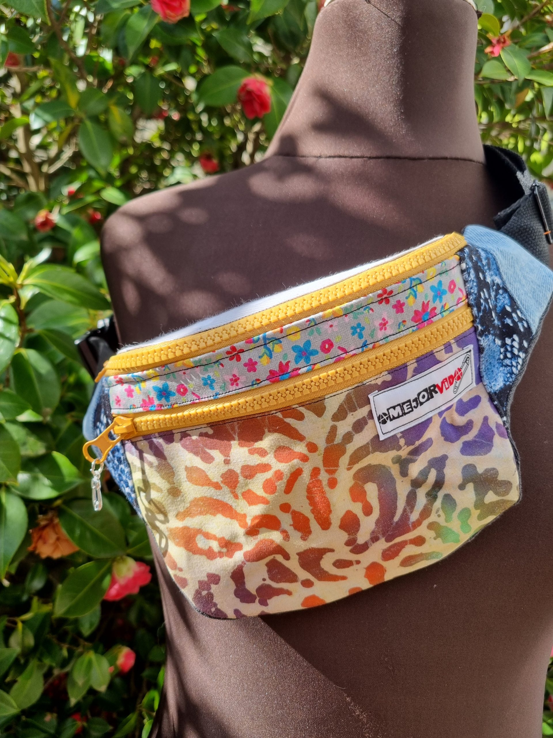- Material utilizado: Cada una de mis riñoneras está confeccionada artesanalmente utilizando vaqueros rescatados, telas en desuso y retales con historia. No solo te llevas un accesorio práctico y resistente; te llevas una pieza única que ha evitado que materiales de calidad terminen en el vertedero. Porque la moda más bonita es la que respeta el planeta.