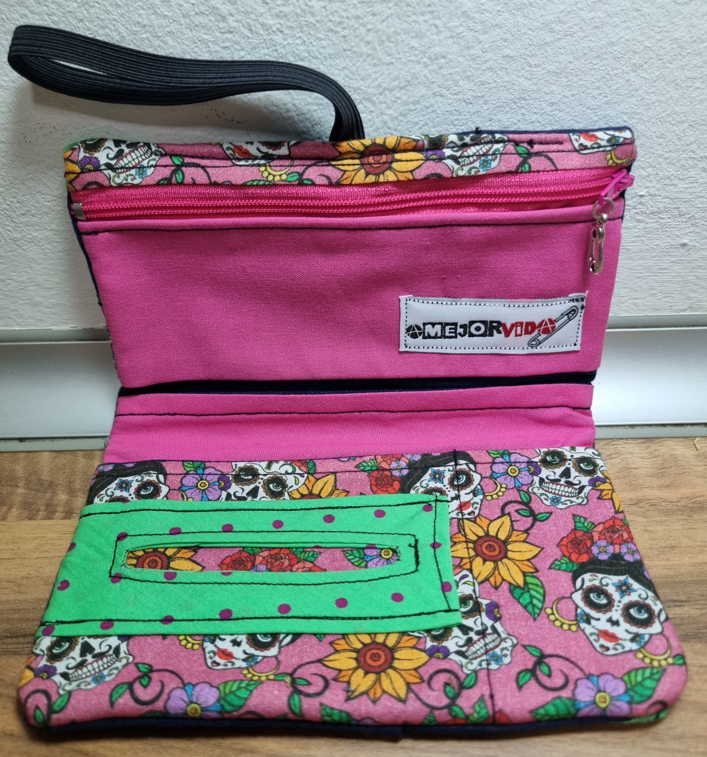 Cuentan con un compartimento con ranura para meter el librillo de papel abierto y no tener que sacarlo cada vez que quieras hacer un cigarro, uno para filtros, otro para el mechero y uno mas grande para meter el paquete de tabaco entero. Además, en la parte superior, he creado un bolsillo con cremallera para poder usarlo de monedero, meter bolsitas para las cacas de perro (el que los tenga) o lo que se te ocurra y salir a la calle con lo justo.